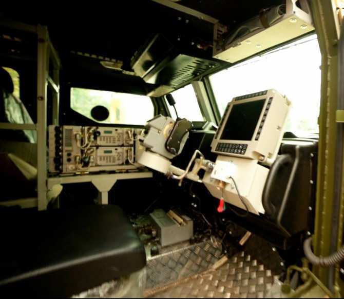 На крыше автомобиля установлен модуль самообороны с пулеметом «Корд» калибра 12,7 мм. Он также управляется дистанционно.