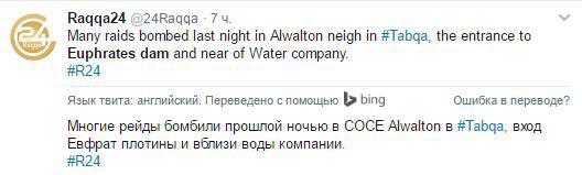 «Много воздушных рейдов коалиции прошлой ночью были в Табке. ВВС наносили бомбовые удары у плотины Евфрат и вблизи обслуживающей ее компании», — сообщает новостное агентство «Ракка-24», а также курдские источники.