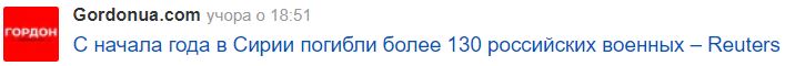 The Ukranian went even further and totally twisted Reuters piece. Gordon.ua resource published the artcile titled: «More than 130 Rusian servicemen have died in Syria since the beginning of the year — Reuters».